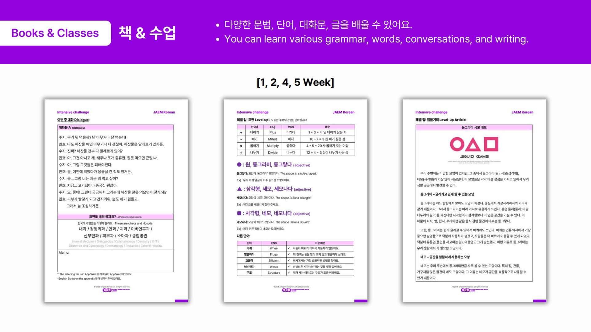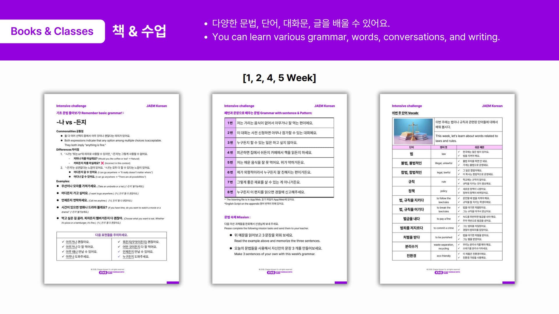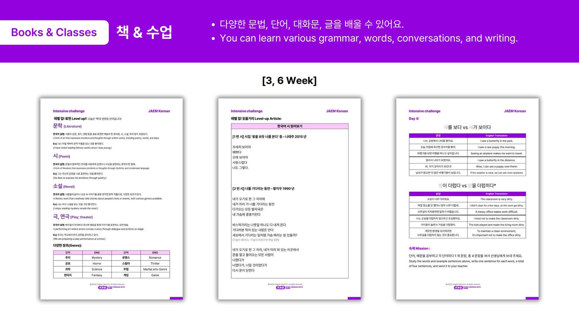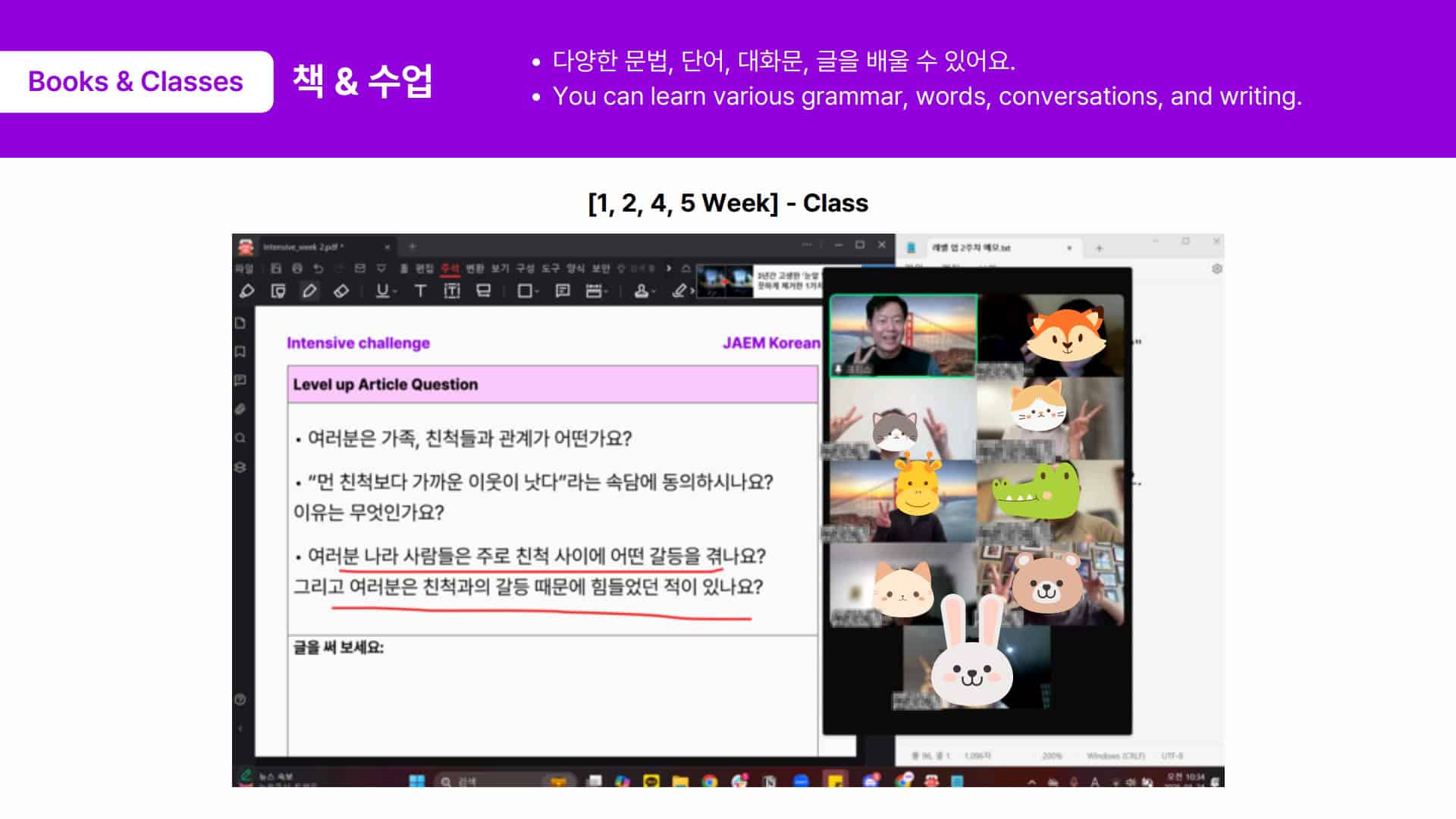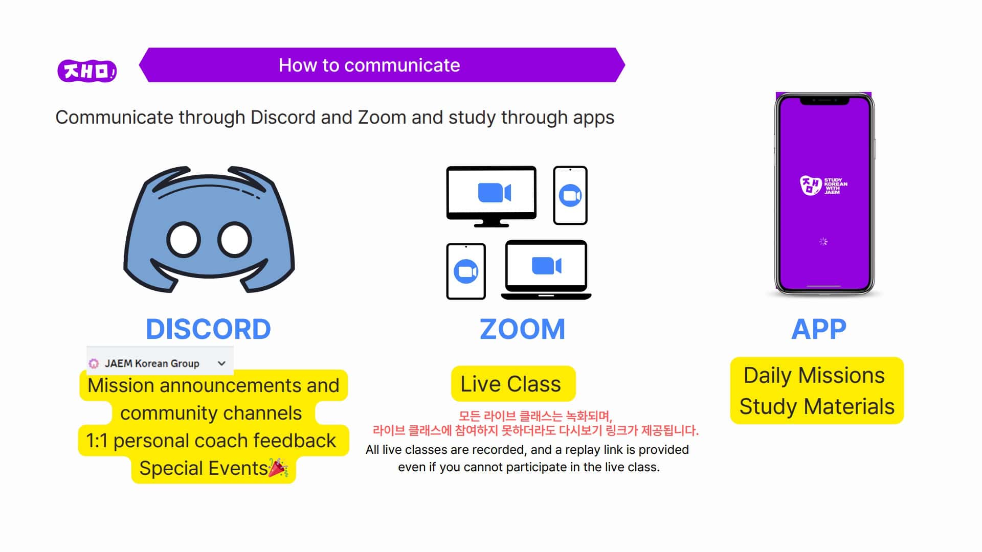 Learn Korean with JAEM Korean App & JAEM Challenge: Discover the best way to learn real Korean with our comprehensive app. Enjoy a wide variety of free lessons and courses designed to help you master the language. Also, our unique JAEM challenge program guides you from an upper-beginner level to a master course, all under the guidance of Native Korean Coaches. Whether you’re just starting out or looking to refine your skills, this program offers an effective path to fluency.